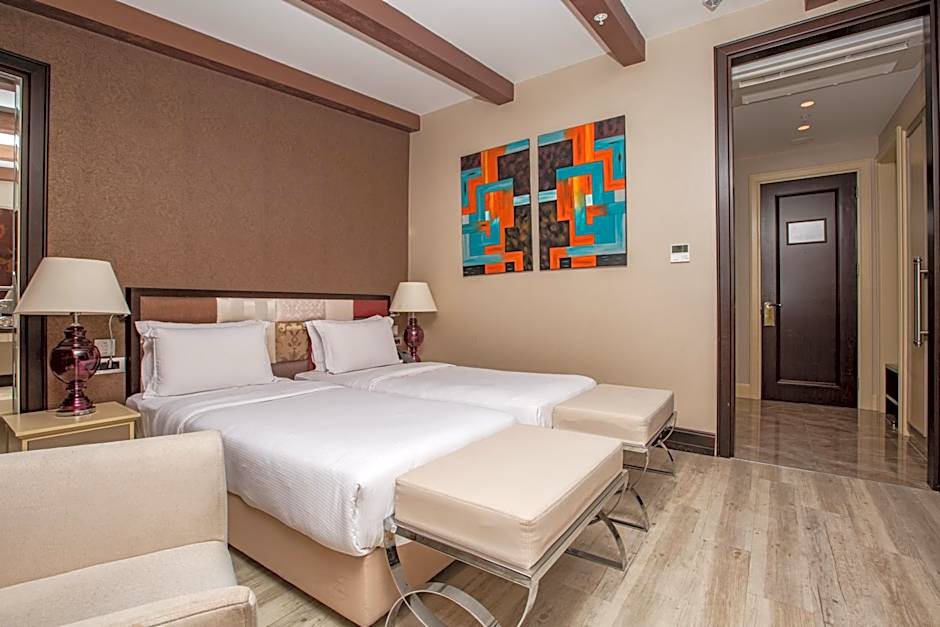 The Elysium Taksim propose une gamme d'équipements conçus pour garantir un séjour confortable et agréable. Les clients peuvent profiter de forfaits spa et bien-être, se détendre dans la piscine intérieure ou se faire dorloter avec des bains de vapeur turcs et des soins de spa. Pour les plus petits, il y a un club pour enfants et un buffet adapté aux enfants. L'hôtel dispose également d'un restaurant et d'un bar, offrant de délicieux repas et des boissons rafraîchissantes. Chaque chambre est équipée de la climatisation, d'une kitchenette et d'une connexion Wi-Fi gratuite, garantissant un séjour confortable et pratique.
