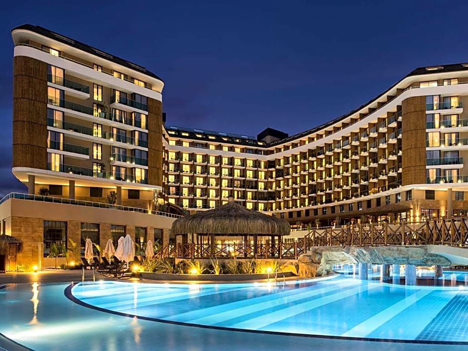 Situé dans la ville côtière animée de Lara, en Turquie, le Aska Lara Resort & Spa Hotel est un luxueux établissement 5 étoiles, à seulement 2,3mi du centre-ville animé. Idéal pour les familles et les groupes d'amis, ce paradis en bord de mer offre tout ce dont vous avez besoin pour une escapade mémorable : une piscine extérieure étincelante et une piscine intérieure, ainsi qu'une plage privée où vous pourrez vous prélasser au soleil et écouter le doux clapotis des vagues. Commencez chaque matin par un petit-déjeuner offert et profitez du Wi‑Fi gratuit ainsi que du parking privé sur place, pour un séjour confortable et sans souci.