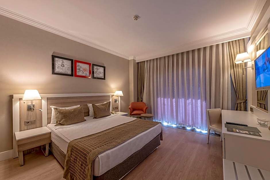 Les équipements d'accessibilité et adaptés aux familles comprennent l'accès pour fauteuils roulants, un buffet adapté aux enfants, des chaises longues et transats de plage gratuits, une aire de jeux et une réception ouverte 24h/24. Avec une variété de vues — jardin, lac, rivière et montagne — cet emplacement en bord de mer constitue une base animée pour explorer Side et la côte d'Antalya.