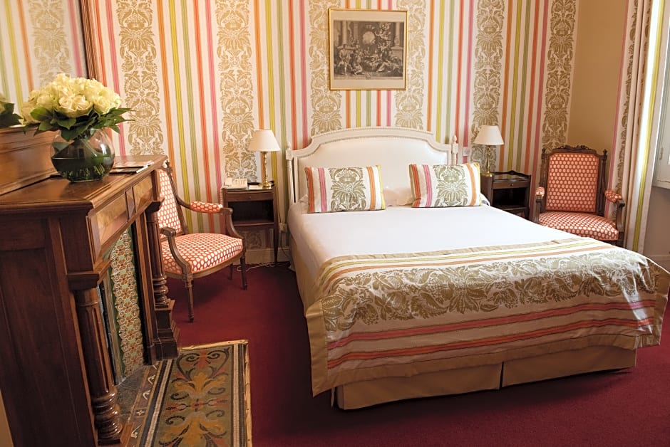 Hôtel Le Choiseul offers a variety of room options including Superior Rooms, Deluxe Rooms, Suites, Tradition Rooms, Classic Double Rooms, and Family Rooms. All rooms are non-smoking and have different bed sizes. The Superior and Deluxe Rooms accommodate 2 adults and 1 child, the Suite accommodates 3 adults and 2 children, the Tradition Room and Classic Double Room accommodate 2 adults, and the Family Room accommodates 3 adults.