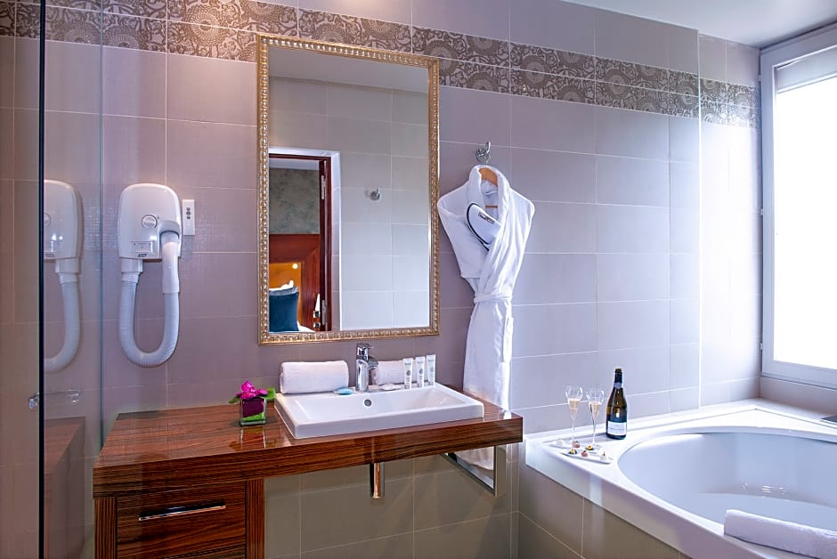 Sur place : une piscine extérieure (gratuite) et une piscine privée (en supplément), un restaurant, un bar, ainsi que des formules spa et bien-être. Bain turc/hammam, sauna et massages sont disponibles moyennant un supplément, ainsi que des installations pour réunions/banquets. Wi‑Fi gratuit, climatisation et chambres insonorisées ajoutent au confort, tandis que le parking privé (en supplément) et la navette aéroport (en supplément) facilitent la logistique.