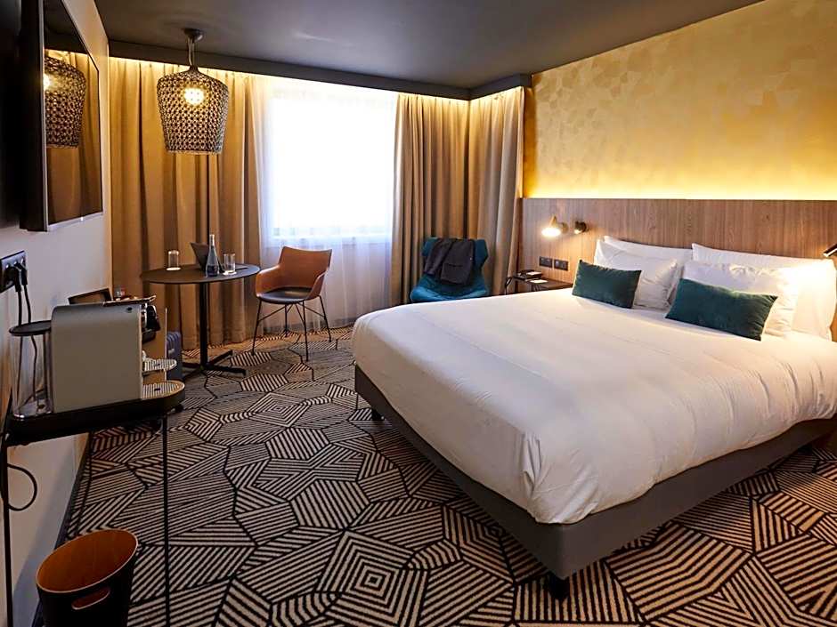 Choose from a selection of comfortable and stylish room types to suit your needs. The Family Superior Room with One Double Bed and One Single Bed is perfect for families, accommodating up to three adults and two children. For a cozy and intimate stay, opt for the Standard Double Room, which comfortably accommodates two adults and one child. If you're looking for a bit of extra space, the Privilege Double Room with Sofa Bed offers room for four adults and three children. Whatever your preference, each room is thoughtfully designed with your comfort in mind, ensuring a pleasant and relaxing stay at Mercure Arras Centre Gare.