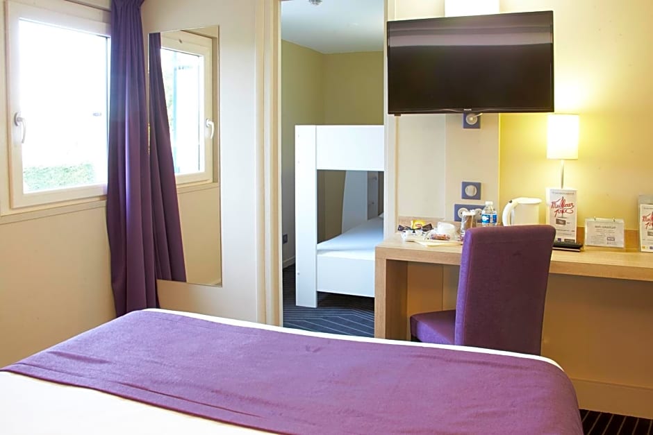 Kyriad Beaune hotel offers a variety of room types including Quadruple Rooms with 1 Double Bed and 2 Single Beds, Triple Rooms with 1 Double Bed and 1 Single Bed, Double Rooms with 1 Double Bed, and Twin Rooms with 2 Twin beds. None of the rooms allow smoking. The sizes of the rooms vary from 151 sqft to 194 sqft.