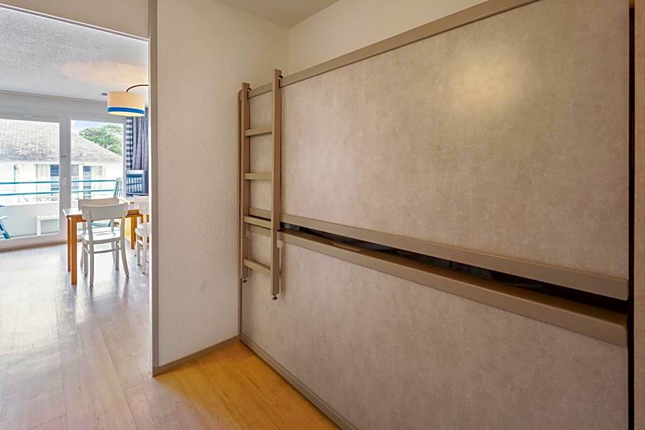 This studio features a living area with a single sofa bed with one pull-out bed (recommended for children) and a sleeping alcove with 2 bunk bed. It has one independent bathroom with a bath. The fully equipped kitchenette opens on the living area. You are kindly requested to clean the kitchen area before departure. Some accommodations have a sea view (extra charge and on reservation, please contact the reception). Some of them are not served by an elevator.