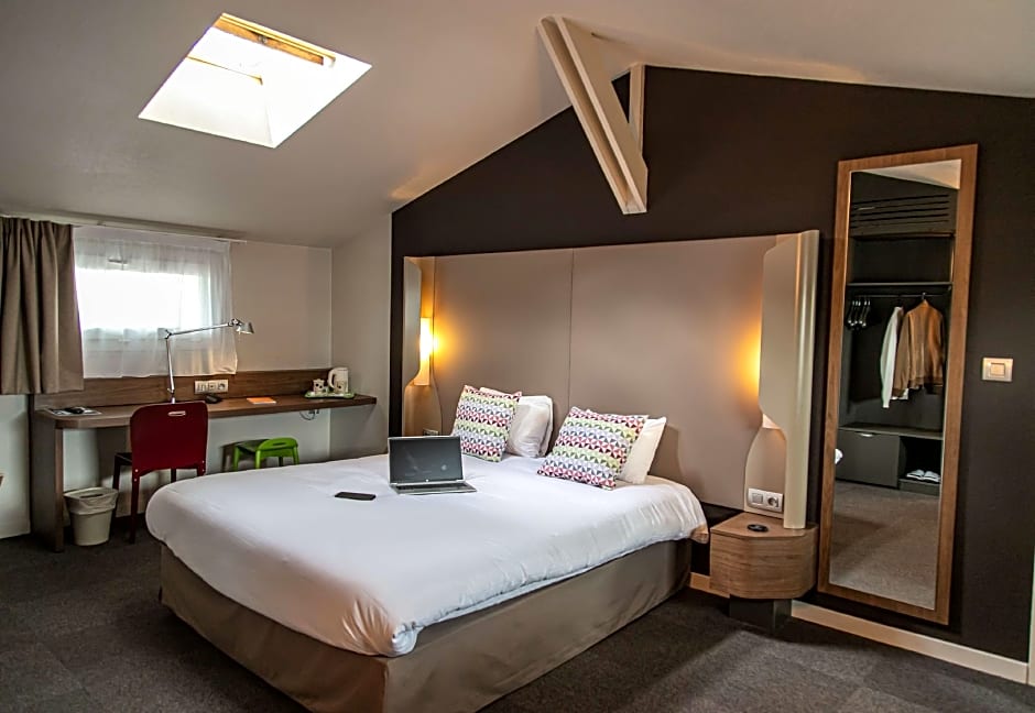 At Campanile Toulouse - Blagnac Aéroport, the hotel offers a variety of room types. The rooms include Quadruple rooms with one double and twin beds, accommodating up to 4 adults and 2 children, as well as Superior Double rooms with one double bed, accommodating 2 adults and 1 child. There are also Double rooms with two double beds, accommodating up to 4 adults and 2 children, and Superior Twin rooms with two twin beds, accommodating 2 adults and 1 child. Smoking is not allowed in any of the rooms.