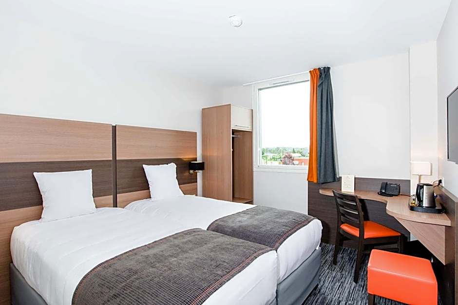 This twin room has a electric kettle, soundproofing and air conditioning. This room cannot accommodate a baby cot.