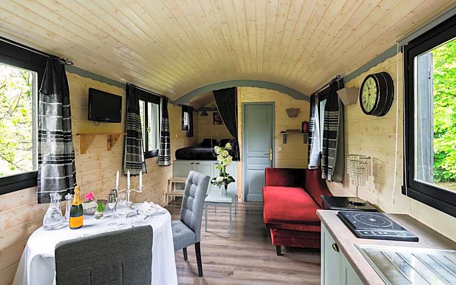 This air-conditioned wooden caravan offers a small garden area, a fully equipped kitchenette and a private bathroom with free toiletries and a shower. A seating area with an LCD TV is also provided. Please note that the price is based on 2 guests.