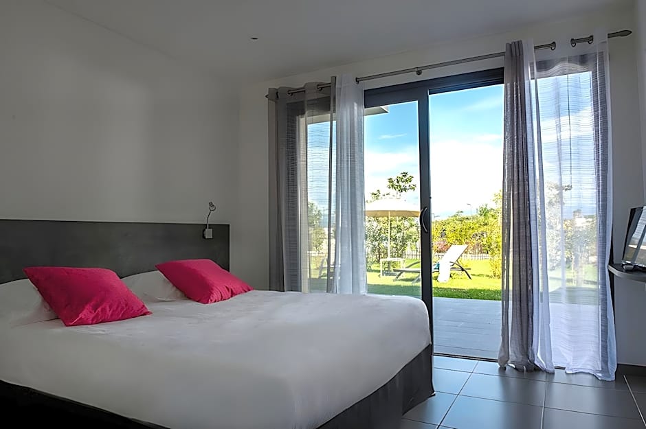 Situé sur la côte Grosseto‑Prugna, cet apart‑hôtel 4 étoiles en bord de mer accueille les amateurs de soleil dans une ambiance animée — soirées avec musique live et bar animent les soirées après une journée sur le sable. Le Wi‑Fi gratuit permet de rester connecté facilement, et une réception ouverte 24h/24 aide en cas de besoin. L'accès à la plage comprend parasols et chaises, tandis que terrasses et balcons offrent une vue sur le jardin ou la mer à apprécier avec un café le matin ou un verre le soir.