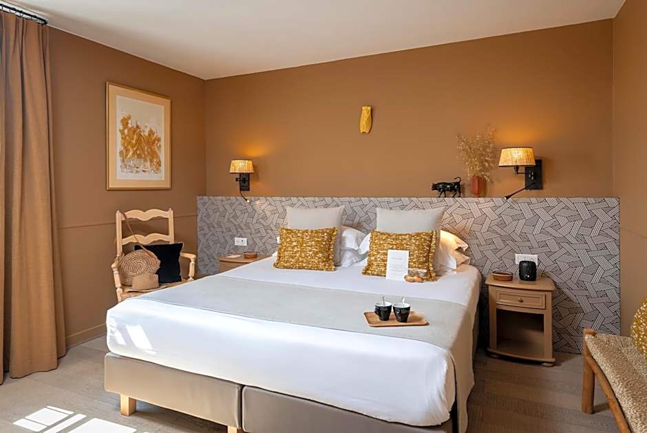 Double or Twin Caractere Room is 215 square feet and includes a king-size bed 150-183 width plus extra beds on demand, satellite tv , safe, bathrobes, and slippers and has a Disability-friendly bathroom.