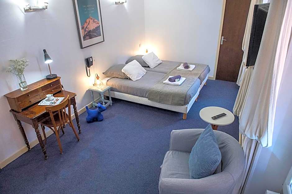 This superior quadruple room has 2 double bedrooms and a bathroom with a toilet and a bath. One of the rooms comes with a double bed and a TV. The other room has 2 single beds. Both rooms have large windows with views over the mountains, heating and free WiFi. This room is ideal for families or small groups traveling together.