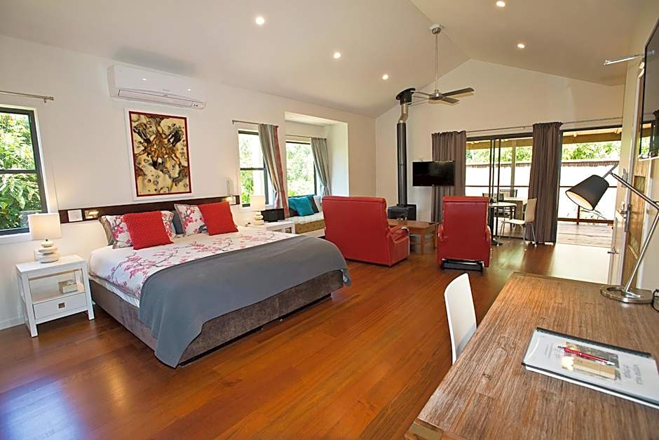 This spacious cottage is air-conditioned and features a double spa bath, a warming fireplace (seasonal) and a private courtyard with BBQ facilities.