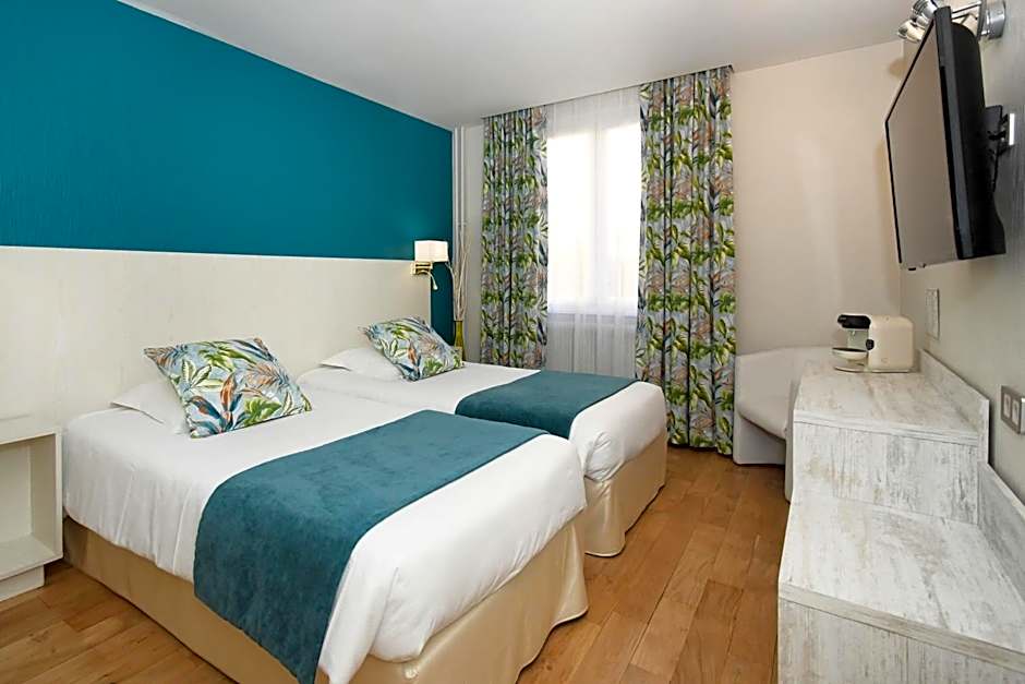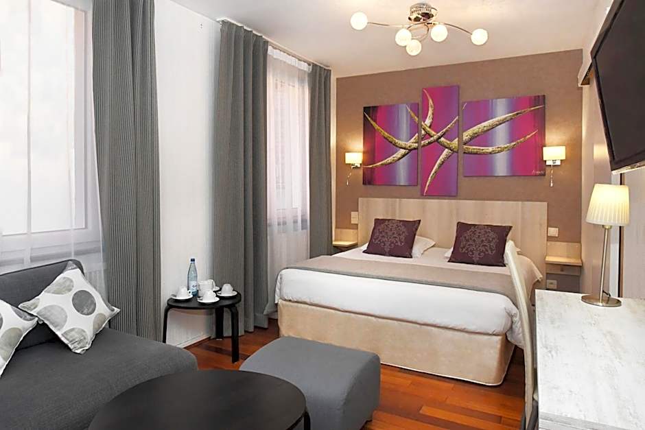 For those seeking a bit more space, the Superior rooms offer a comfortable stay with two beds, ideal for friends or family members traveling together. Unwind after a day of exploring the city in these thoughtfully designed rooms, complete with soundproofing for a restful night's sleep. Whether you're embarking on a romantic getaway or a fun-filled family vacation, Logis Hôtel du Centre has a room to suit your needs and preferences.