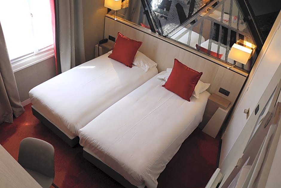 Les Terrasses Poulard offers triple rooms with various bed configurations and sizes, accommodating 3 adults and up to 2 children. Both the main building and the annex provide double or twin rooms with stunning views of Mont-Saint-Michel Bay, suitable for 2 adults and 1 child, featuring twin, double, or queen-size beds. Smoking is not allowed in any of the rooms at the hotel.