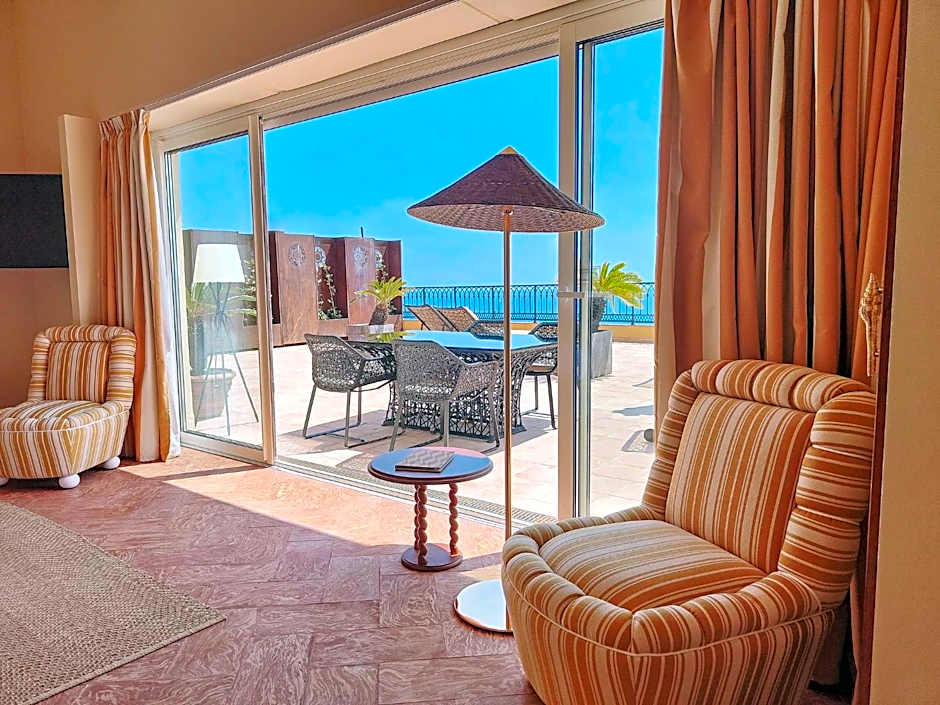 Junior Suite with a Full Sea View is 431 square feet and includes a king-size bed 150-183 width plus living room and extra beds on demand.