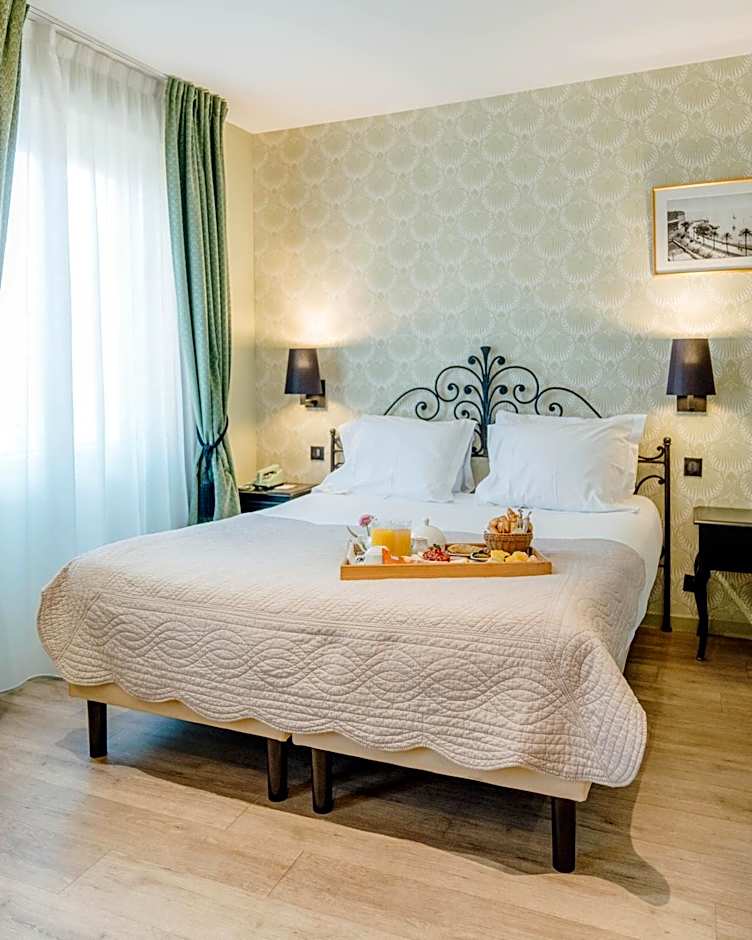 For a touch of luxury, guests can opt for the spacious Junior Suite, spanning 377 square feet and offering a restful Queen-size bed. This elegantly designed room provides a comfortable retreat after a day of sightseeing. The Superior Double Room, with its Queen-size bed and two twin beds, offers a cozy space to unwind at the end of the day. Both room options provide a peaceful atmosphere for a relaxing stay at Hotel Le Grimaldi in the heart of Nice.