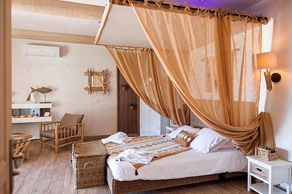 Indulge in luxury at Abri Cosy - Suite Romantique en Camargue with the exclusive 1 King Bed Suite featuring a relaxing jetted tub. The spacious suite can accommodate 2 adults and 1 child, providing the perfect setting for a romantic getaway or a small family retreat. With no smoking allowed in the rooms, guests can enjoy a fresh and clean environment throughout their stay.
