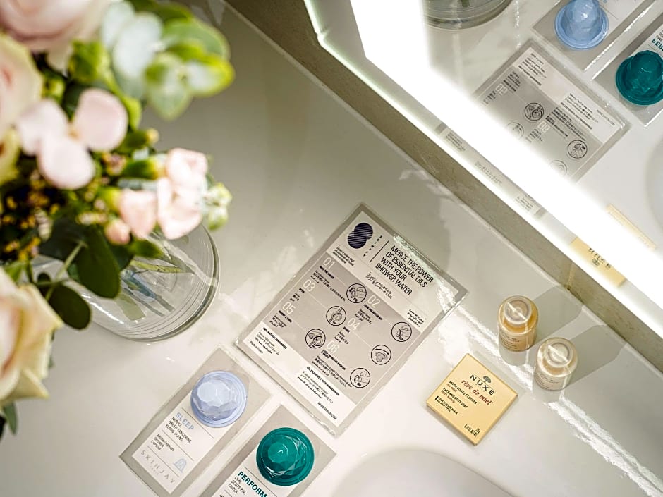 These 2 adjacent rooms room has a electric kettle, cable TV and mini-bar. The bathroom has Nuxe toiletries.