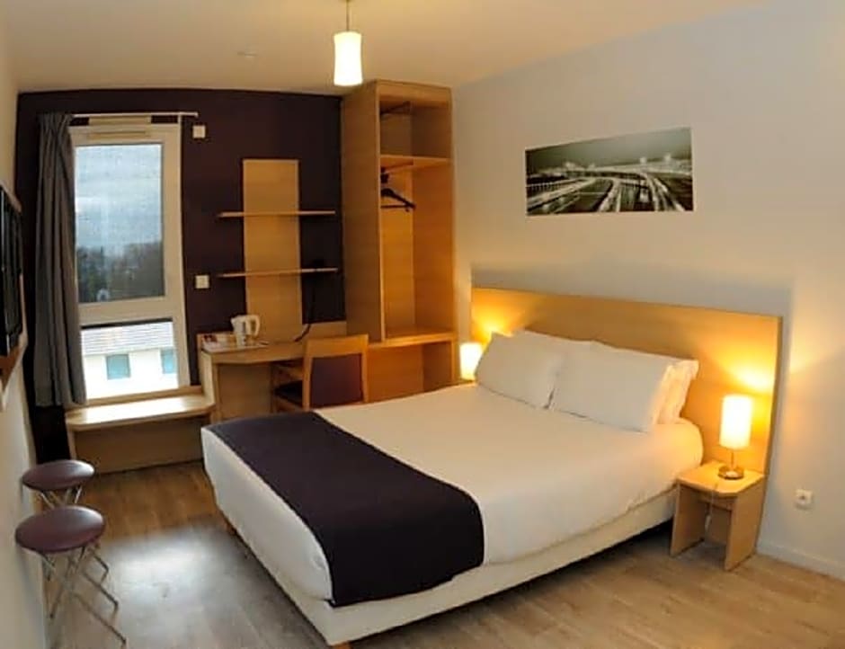 The EastLodge Lyon Est Eurexpo hotel offers Deluxe Rooms that are double occupancy and non-smoking. These rooms have a size of approximately 205 sqft and are equipped with one double bed and two twin beds, accommodating up to two adults and no children.