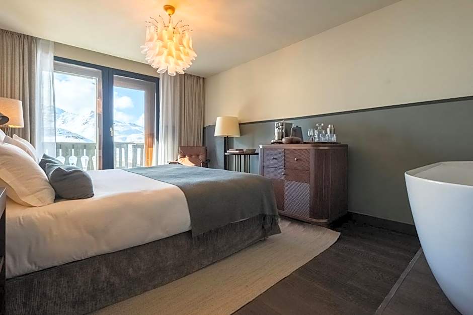 This renovated privilege room with village view has two twin beds, bathroom with a shower, hair dryer and The Grown Alchemist welcome gifts, a mini-bar, a video projector and a safe, a comfortable armchair awaits you after a good day of skiing. Breakfast or half-board included, according to the chosen pension. All reservations are guaranteed upon receipt of a deposit. Please note that some rooms have a shower and others a bathtub.