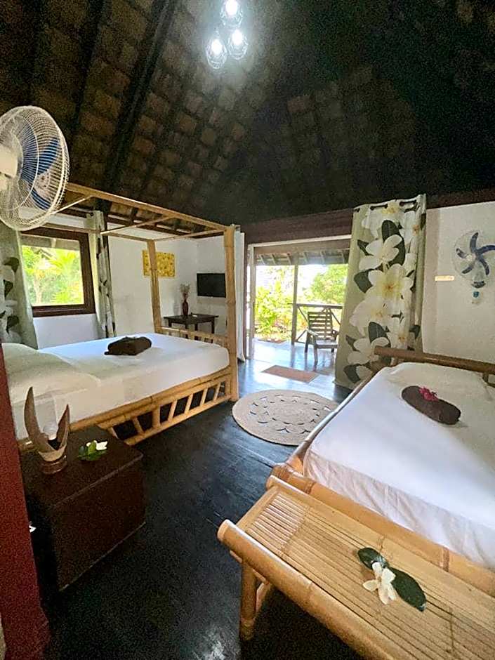 When it's time to relax, take advantage of the peaceful garden views from your room or gather with fellow travelers on the terrace to watch a breathtaking Polynesian sunset. Free beach chairs and picnic areas make it easy to spend a leisurely afternoon by the shore, while kids' meals ensure that even the little ones are well catered to. At Pension Hibiscus Taha'a, every detail is designed to make your stay memorable and fun-filled, all at an affordable price on this enchanting island paradise.