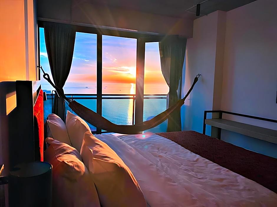 Address: 57 Sherif Khimshiashvili Street, Orbi Beach Tower 37-38 Floor. Located on the beachfront, this Batumi hotel offers ocean views and direct sand access. Amenities include breakfast, a restaurant, free WiFi, air conditioning, spa tub, hot tub, sun deck, terrace, balcony with ocean view, kitchen facilities, non-smoking rooms, and elevator access to upper floors. Pets are welcome with extra charges, and an airport shuttle is available for an additional fee.
