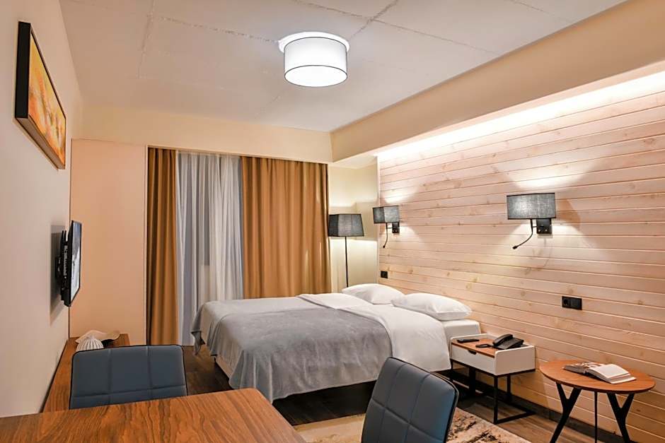 The Gudauri Hills Apart Hotel offers a variety of apartments and twin/double rooms. The apartments range in size from 517 to 829 sqft and can accommodate 7 to 10 adults with multiple bed options. Smoking is not allowed in any of the rooms. The standard double or twin rooms are 312 sqft and can accommodate 3 adults, with a choice of twin beds or a queen size bed.