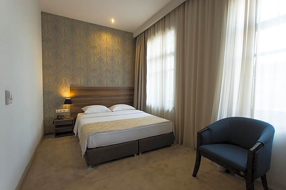 The Old Meidan Tbilisi hotel offers a variety of room types including Double or Twin Rooms, Standard Double or Twin Rooms, Double Rooms with Balcony, Economy Double Rooms, Family Rooms with Terrace, and Deluxe Double or Twin Rooms. Smoking is not allowed in any of the rooms. Bed sizes range from Twin to Double to Queen size, with room sizes varying from 172 sqft to 344 sqft accommodating 2 to 3 adults and 1 child per room.