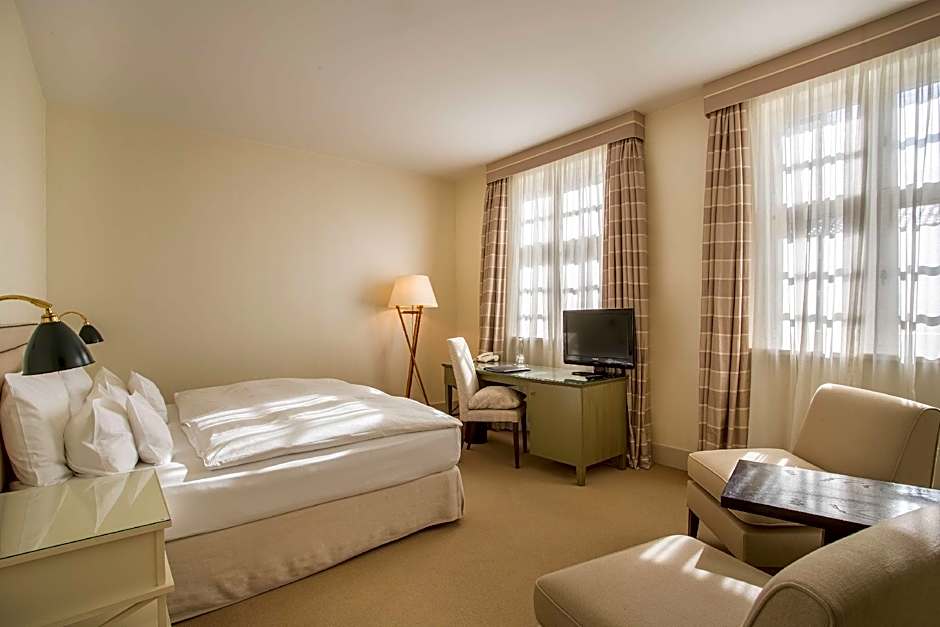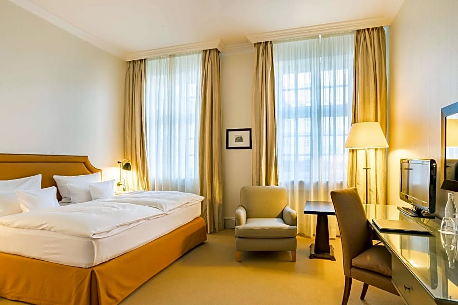 The Parkhotel Quellenhof Aachen offers Classic Double Rooms, Deluxe Double Rooms, and Superior King Rooms. All rooms are double occupancy, non-smoking, and have one King size bed. The Classic Double Room is 215 sqft in size, while both the Deluxe Double Room and Superior King Room are 323 sqft in size. The Deluxe Double Room and Superior King Room can accommodate one child, in addition to two adults.