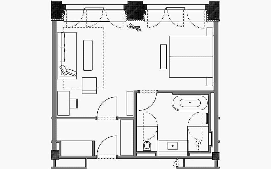 This hypoallergenic suite features a view of the Oranienplatz square, free WiFi,a window seat, Bluetooth speaker, an electronic safe, a heating and cooling system,a bathroom with a bathtub and shower, a hairdryer, a bathrobe, and natural cosmetic products.