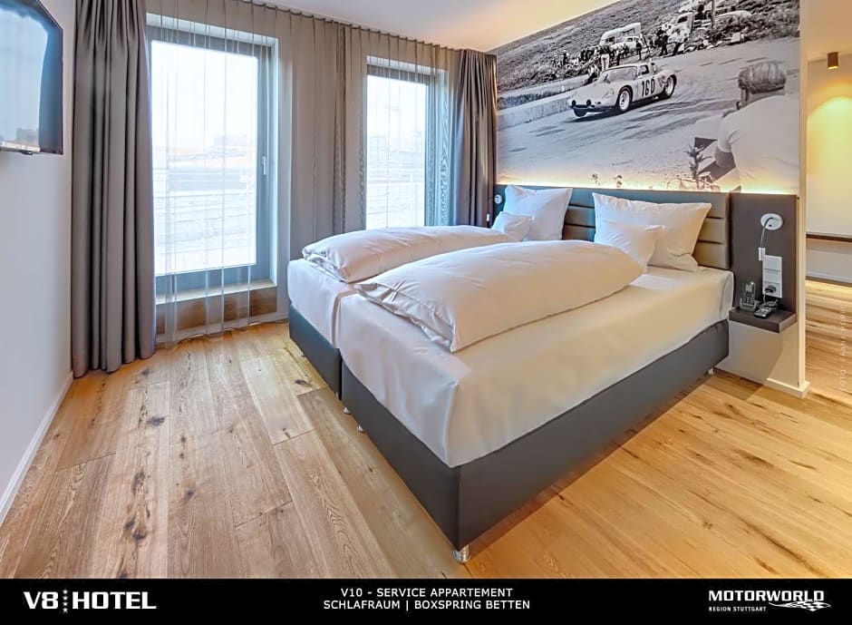 What types of rooms does V8 HOTEL Motorworld Region Stuttgart offer?