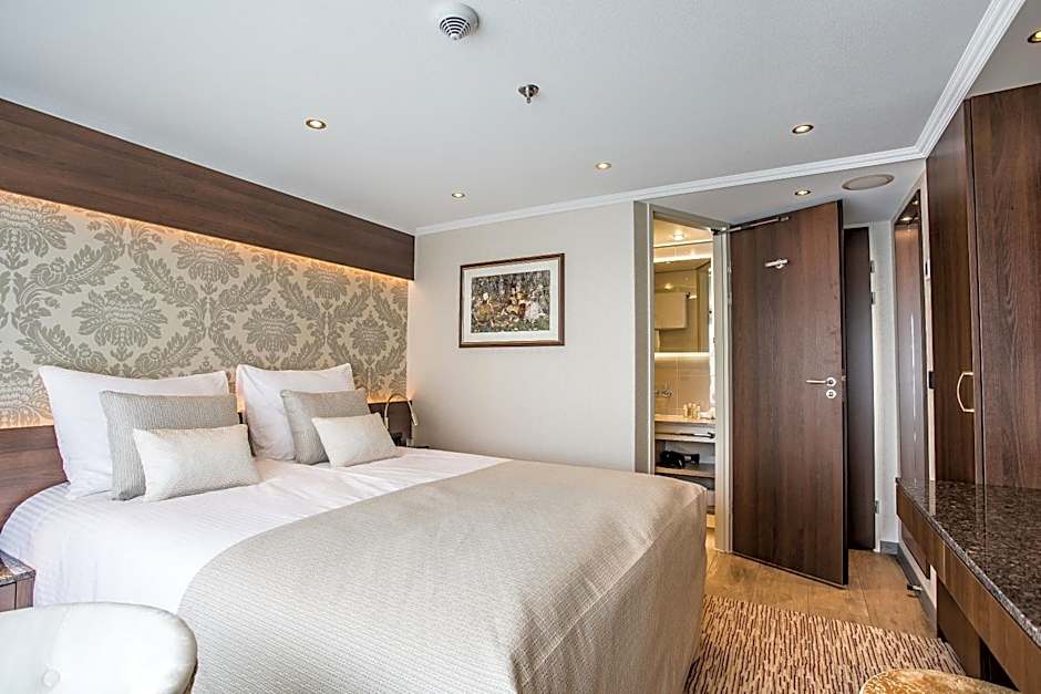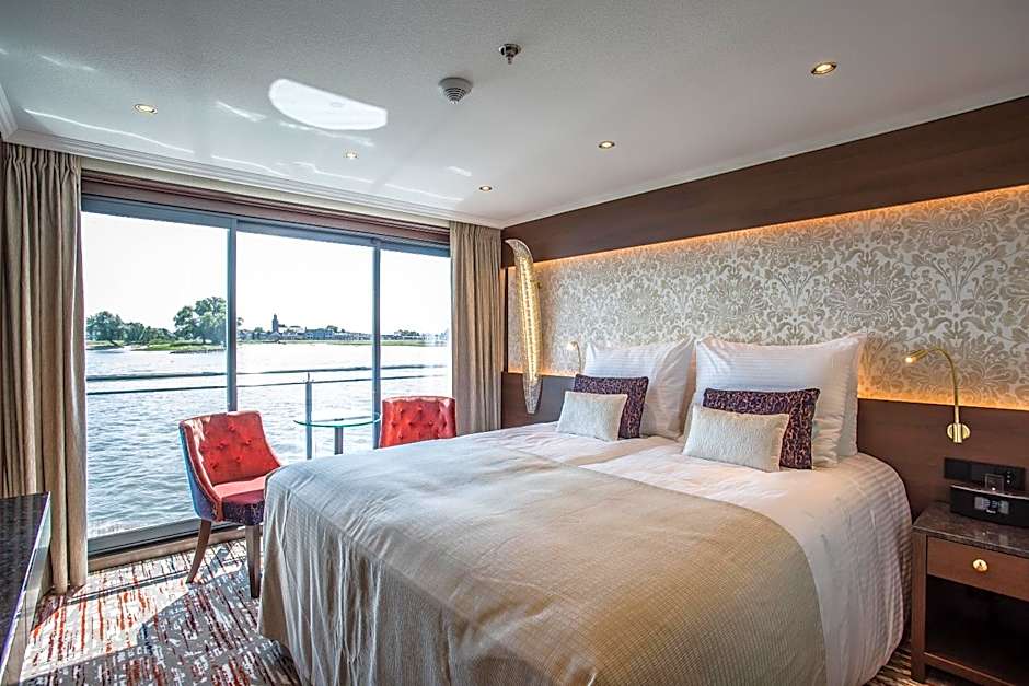 Situated in the lively Altstadt of Düsseldorf along the river, this four-star hotel pairs inviting river views with easy access to downtown. Address: Liegeplatz: Rsr Steiger Düsseldorf 1/2 - Unterhalb Oberkasseler Brücke.