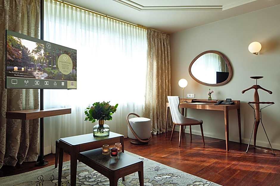Air-conditioned room with cable TV, hot drinks facilities, seating area and mini-bar. These very spacious, warmly decorated rooms also feature a cozy seating area with sofas and armchairs. The bathrooms include heated flooring, bathrobes and a hairdryer. There is a separate WC with bidet.