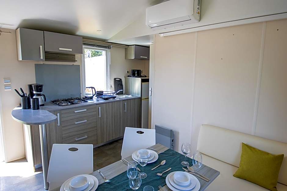 This mobile home consists of 1 living room, 2 separate bedrooms and 1 bathroom with a shower and a hairdryer. Featuring a terrace with garden views, this mobile home also provides a seating area and a flat-screen TV with satellite channels. The unit offers 3 beds.
