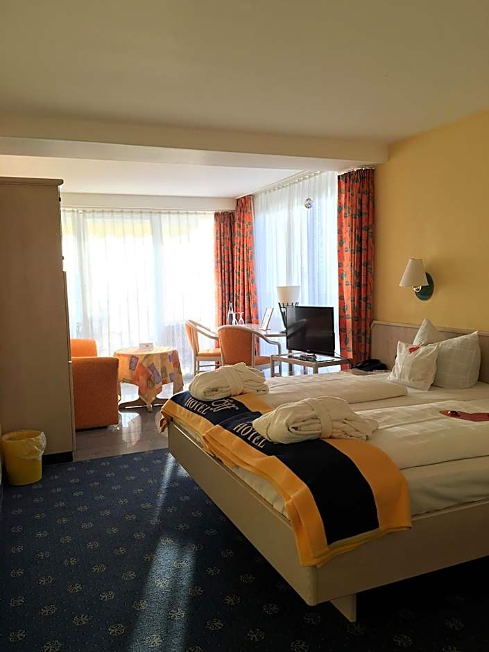 Immerse yourself in the unique charm of Seehotel OFF, where every moment is a blend of relaxation and adventure. After a day of exploring the historic city center just a kilometer away, unwind in the hotel's luxurious spa, complete with soothing sauna sessions and wellness treatments. For the more active traveler, take advantage of the water sports facilities or challenge yourself to a round of golf at the on-site course. And don't miss the chance to bask in the sun on the private beach area or enjoy a leisurely stroll along the Uferpromenade with captivating views of the lake.
