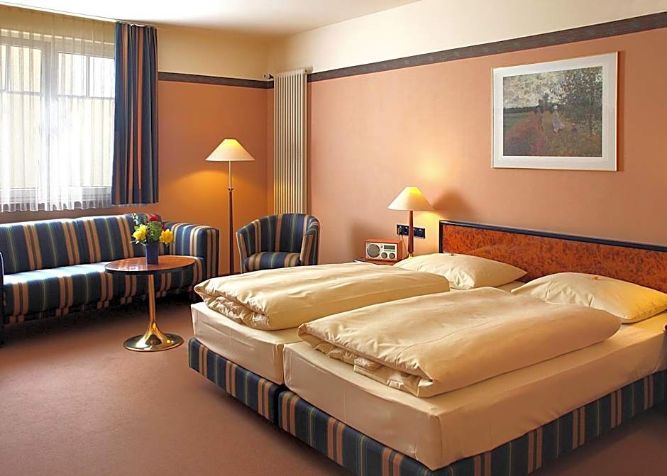 Hotel Falkenstein offers a variety of room options. Their Triple Room is 269 sqft in size and can accommodate 3 adults and 1 child, with 1 twin bed and 1 queen-size bed. The Double Room is 215 sqft and can accommodate 2 adults and 1 child, with 1 king-size bed. They also have a Single Room option for solo travelers, with a twin bed and the same occupancy and room size as the Double Room. Smoking is not allowed in any of the rooms.