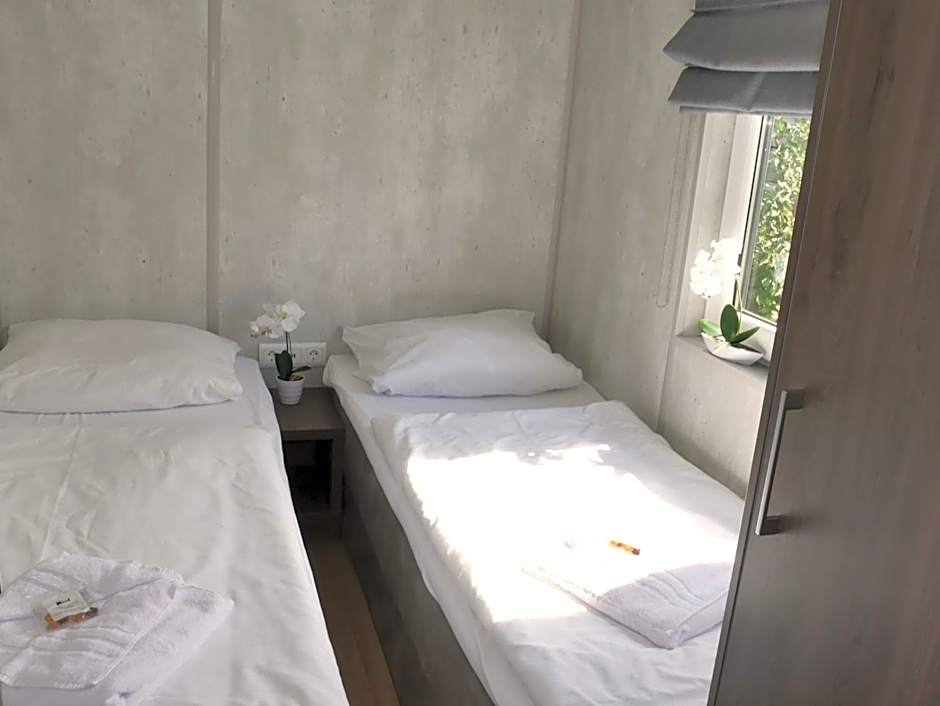The types of rooms available at Sunny Hotel Straubing include Garden Chalet, MobileHome, Business - barrierefrei mit Terrasse, Economy Twin Room, Business Plus, and Business. Occupancy ranges from 2 adults to 4 adults and 2 children. Smoking is not allowed in any of the rooms. Bed sizes consist of sofa bed and twin beds. Room sizes range from 151 sqft to 237 sqft.