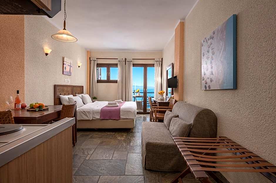 From sea-view studios to a one-bedroom suite, garden-view doubles, and a sea-view apartment, there are several ways to tailor a stay near Afissos Main Village. Comfort, Sea View is a 323-square-foot studio for 2 adults and 1 child, with a double bed plus a sofa bed. Suite, 1 Bedroom spans 431 square feet and pairs a sofa bed with a double bed. Room - 2 Twin, Sea View is a 323-square-foot double room with 2 twin beds and a sofa bed, accommodating up to 3 adults and 1 child. The Double Room, Garden View offers 237 square feet with a single double bed. The Apartment, 1 Bedroom, Sea View also clocks in at 431 square feet with two twin beds and a sofa bed, while Room With Sea View accommodates 2 adults and 1 child (room type not listed). A Triple Room is listed as well, though bed details aren’t provided.
