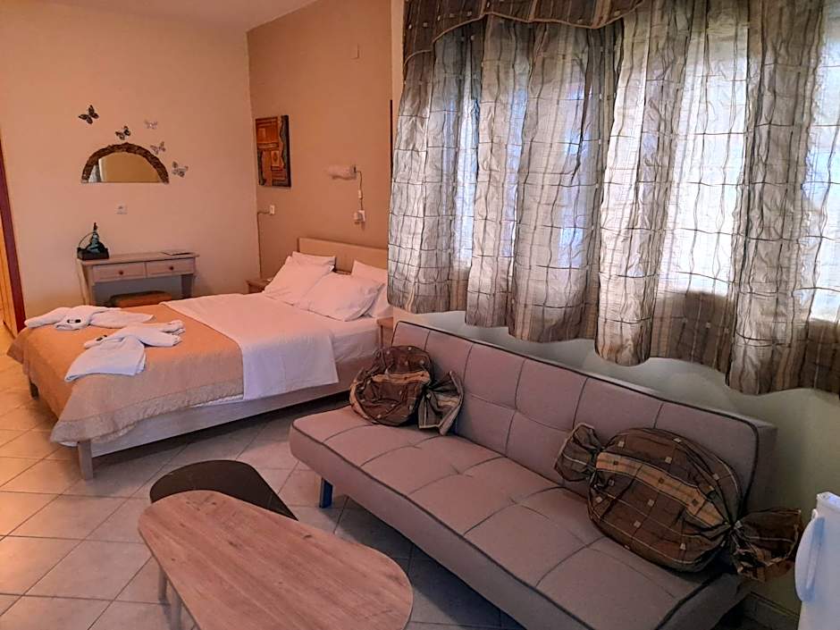 Welcome to the Delfini Apartment Hotel, your perfect seaside escape nestled on the stunning Korasida Beach in Akhladherí, Greece! Just 0,9mi from the bustling city center, this charming 3-star hotel offers an incredible blend of comfort, fun, and adventure. With prices starting at an unbeatable rate, you can experience a delightful stay that feels like a slice of paradise without breaking the bank.