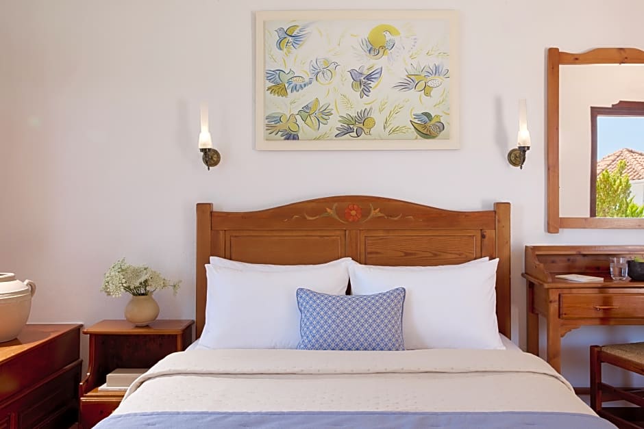 Standard Room Kyknos is 409 square feet and includes either a king-size bed 150-183 width or 2 single beds 80-130 width plus extra beds on demand and hairdryer.