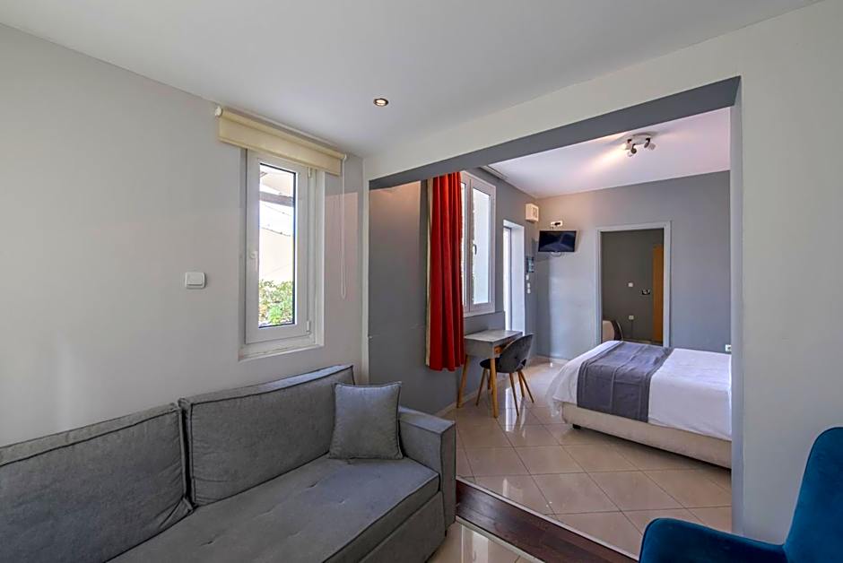 Room options cater to solo travelers, couples, and families alike. The Petite Single is a snug 65-square-foot space with a single twin bed, ideal for an economical stay. Comfort Super and Comfort offer Double/Twin layouts in 118–151 square feet, both non-smoking and comfortable for two guests, featuring combinations of twin and double beds. For those traveling with kids or a bigger group, the Studio (377 square feet) with Acropolis View accommodates up to 4 adults and 2 children, with a layout that includes 1 double bed, 4 sofa beds, and 2 twin beds.