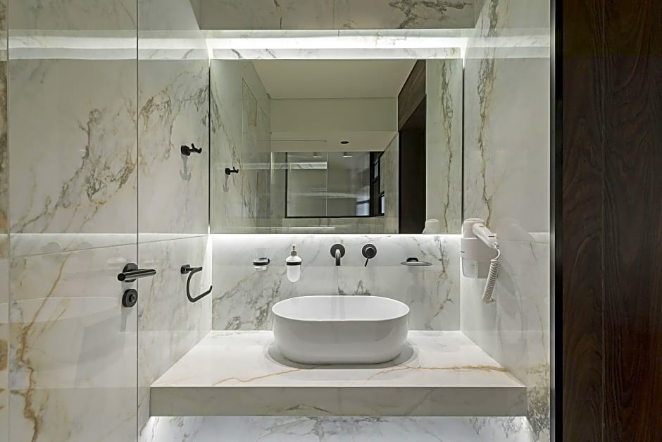 Take a dip at the heated rooftop pool, an adults-only outdoor oasis with city views that’s perfect for a sunset moment. The pool is paired with a soothing sauna and a free fitness center, plus sun deck, terrace, and garden spaces to unwind between city explorations.