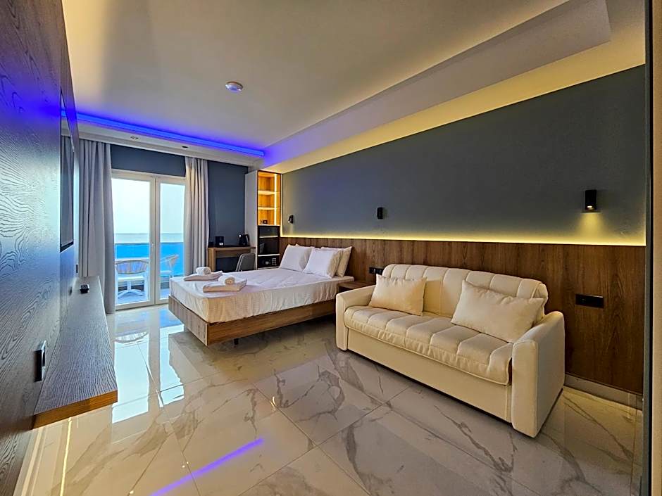 Shuttle services, including airport transfers (extra charges) and a 24-hour front desk, help travelers arrive and depart with ease. A range of room types is available, from Deluxe Studio to Junior Suite with Sea View, plus Double Room and Studio configurations to suit different groups and budgets. With a beachfront setting just 0,1mi from Paralía’s city center, this destination blends seaside charm with practical amenities for an unforgettable Greek getaway.