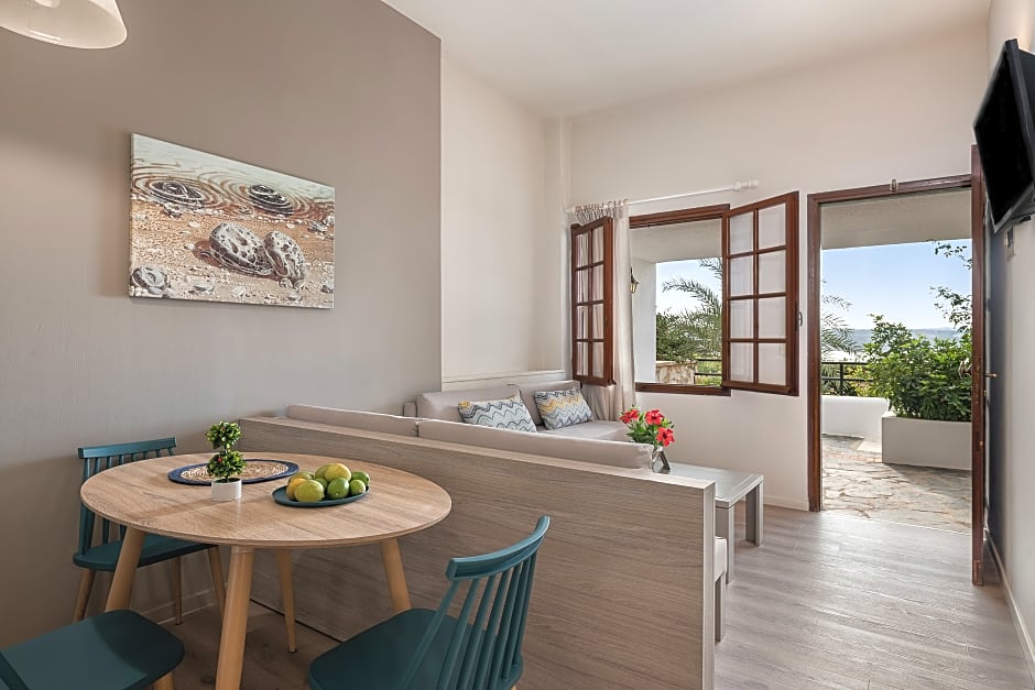 Each suite is equipped with air conditioning, a private bathroom, a kitchenette, and a balcony or terrace, ensuring comfort and relaxation throughout your stay. With soundproof rooms, a kids' pool, and a sun deck available as well, Alianthos Suites provides the perfect blend of tranquility and fun for a truly memorable Greek getaway.