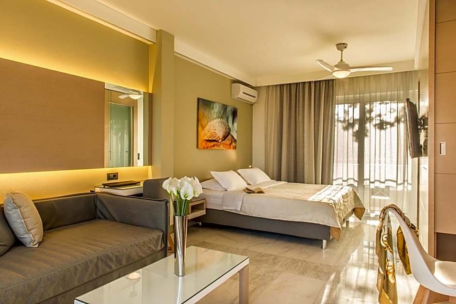 Forum Suites is a 3-star hotel in Chaniá, Greece, located at Chrissi Akti Chania, about 2,3mi from the city center. This beachfront property blends sun-kissed shoreline access with an outdoor swimming pool (free) and a terrace, plus free on-site parking and complimentary Wi-Fi. Rooms offer air conditioning, non-smoking options, and balconies or patios with garden or sea views for a relaxing stay.