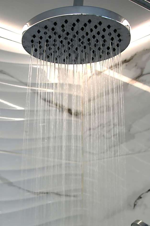 The double room provides air conditioning, a wardrobe, a balcony with sea views as well as a private bathroom featuring a shower. The unit offers 1 bed.