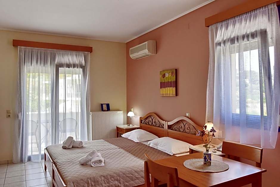 Emporios Bay Hotel Chios is a 3-star apart hotel in Emporios, on the island of Chios, Greece. A bright blend of apartment-style living and hotel conveniences, it features an outdoor swimming pool, a terrace with mountain views, and close proximity to the beach. Free private parking and free Wi-Fi help travelers settle in, while air conditioning, a kitchenette with kitchenware, and a balcony add everyday comfort. Beach access is complemented by free beach umbrellas and loungers, a sun deck, a garden, and soundproof rooms; a pet-friendly option is available for an extra charge, and amenities include room service, a bar, an airport shuttle (extra charges), and more.