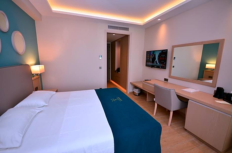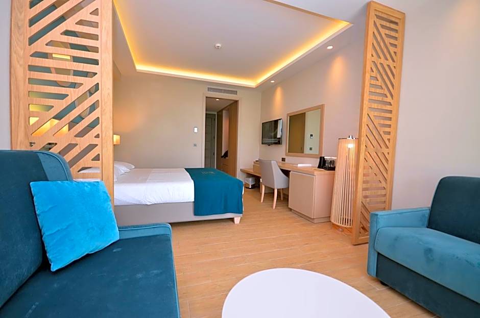 Almyros Beach goes beyond just accommodation; it offers a complete holiday experience. Unwind and bask under the warm Greek sun on the sun deck overlooking the crystal-clear waters, providing a perfect setting for relaxation. The hotel's three outdoor pools, including a kids-only pool, offer a refreshing respite during the warm seasons with comfortable loungers and parasols provided for guests to enjoy a leisurely day by the poolside. Whether you prefer a dip in the water or simply soaking up the sun, there are options for everyone to enjoy.