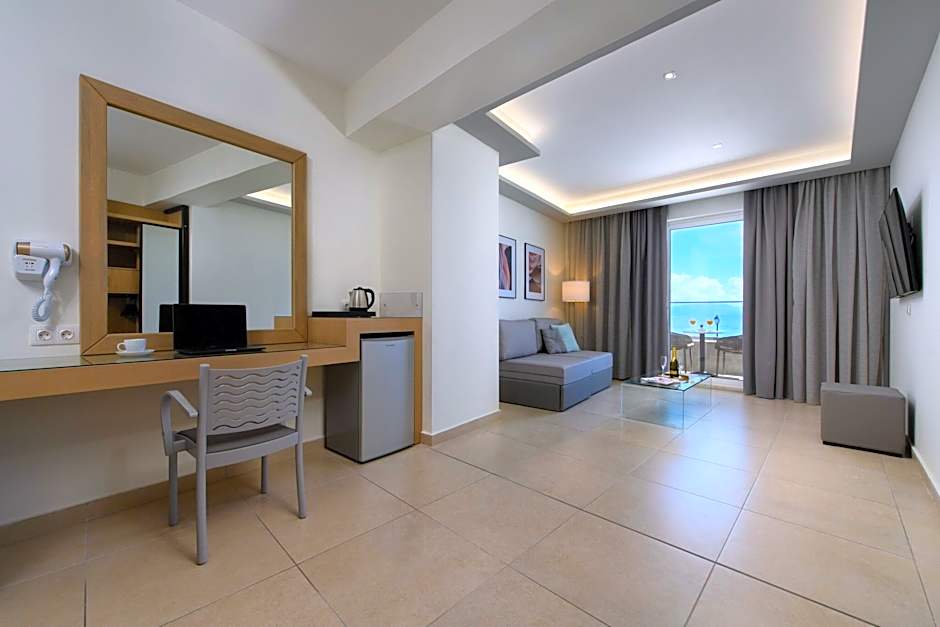 Featuring a private entrance, this air-conditioned suite is consisted of of 1 living room, 1 separate bedroom and 1 bathroom with a shower and a hairdryer. Boasting a terrace with sea views, this suite also offers a tea and coffee maker and a flat-screen TV with cable channels. The unit offers 2 beds.