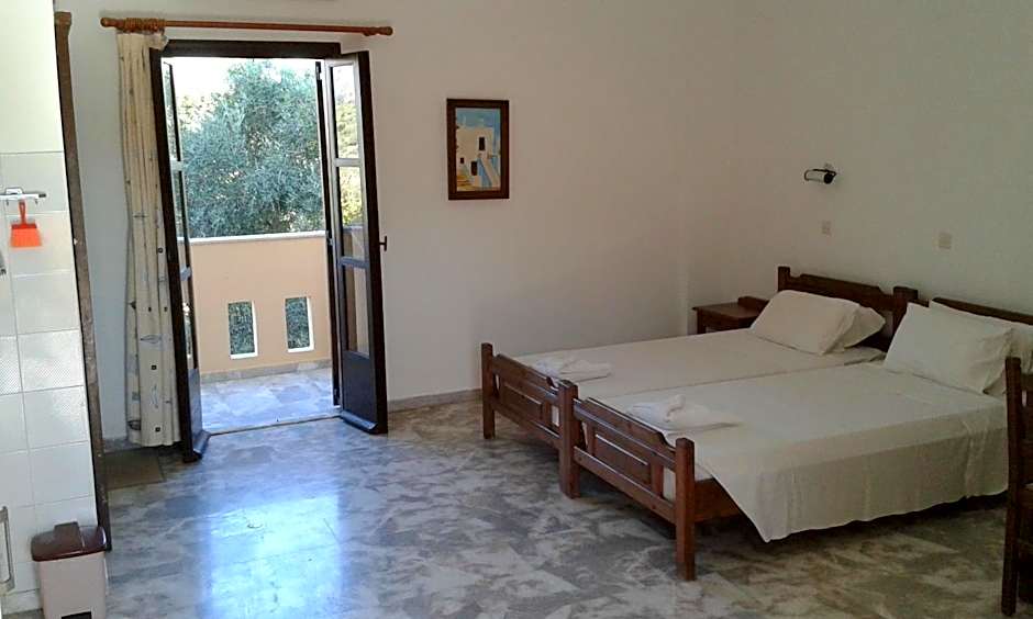 Payment is accepted in cash and via Visa or Mastercard. Room options include Villa (accommodates 2 adults), Studio (2 adults, 1 child), Double Room, Single Use (2 adults), Studio, Terrace (2 adults, 1 child), and Apartment, 1 Bedroom (2 adults, 1 child). All units are non-smoking. Episkopi, Greece serves as the backdrop for this relaxed base near the coast.