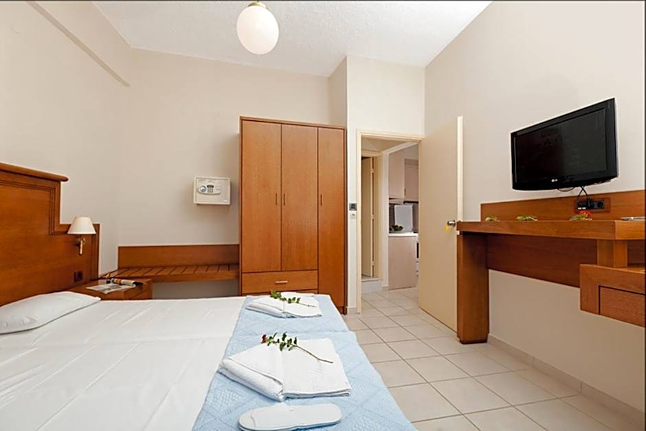 The apartments are equipped with all the essentials for a comfortable getaway - cozy air conditioning, a fully-equipped kitchen for the aspiring chef, and even free WiFi to keep you connected while you brag about your beachside escape. With a dedicated tour desk to help you explore the mesmerizing beauty of Greece, playgrounds for the kids, and free toiletries to make your stay feel like home, Giorgi's Blue Apartments is the perfect spot for making unforgettable memories on your next holiday!